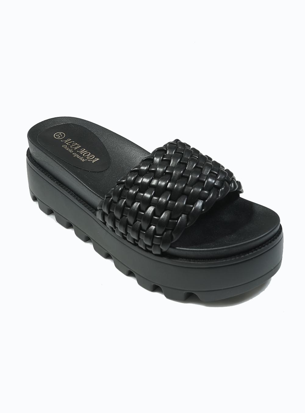Γυναικεία σανδάλια με πλεκτό σχέδιο στη φάσα και τρακτερωτό τακούνι